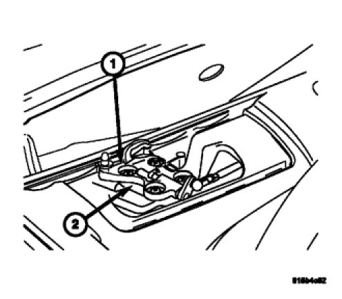 NOTE: When installing the top catch/linkage, use the same number of shims that were present during removal. If that number is not known, start with two, test drive the vehicle for wind noise, and remove one-at-a-time until the windnoise is no longer present.