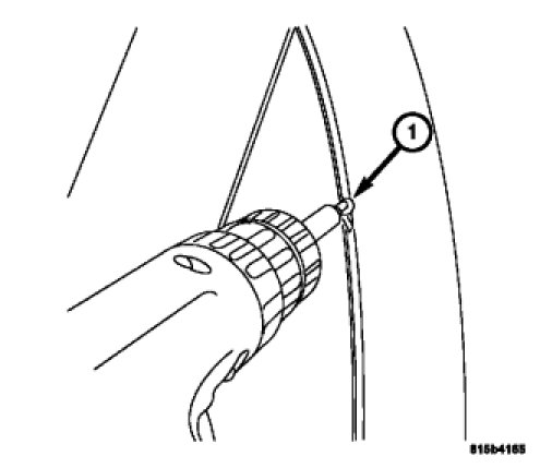 6. Drill out the rivets (1) holding the support belts in place.
