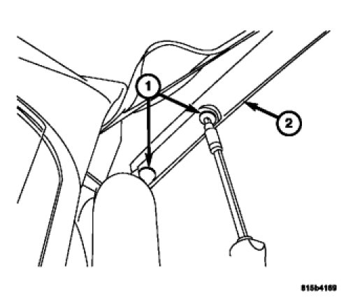 7. Remove the screws (1) holding the rear bow (2) in place.