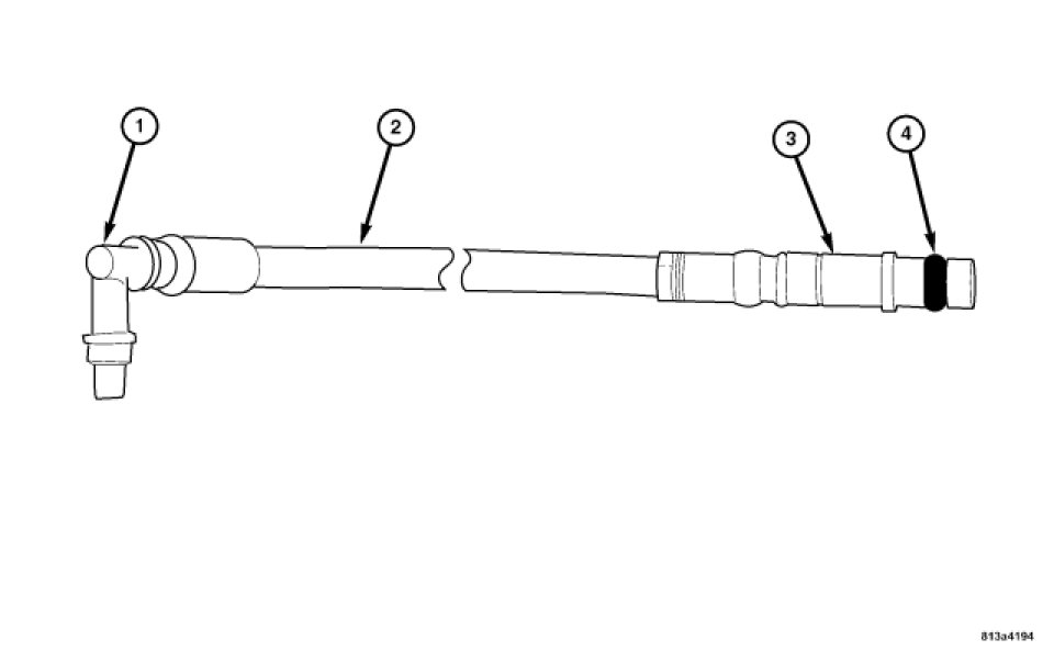 The Hydraulic Lines used for the Convertible Top are flexible multi-layered high pressure lines. The lines are designed to carry hydraulic oil to and from the hydraulic cylinders. The cylinder side of the hydraulic line is a 90° elbow coupler (1), and the pump side of the hydraulic line is a straight coupler (3). The hydraulic lines are identified by a number printed on the outer casing of the line. Each line is numbered, and must always be placed in the proper cavity in the line retainer plate. When replacing the convertible top hydraulic lines, always replace as a set.