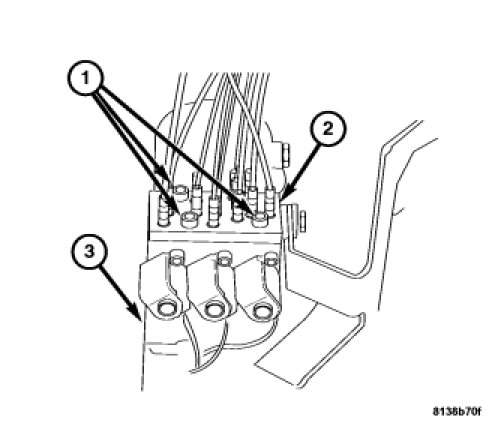 5. Install the hydraulic line retaining plate to the hydraulic pump (2) Removal.
