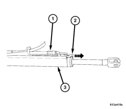 8. Slide the hydraulic line retaining clip (2) into the groove in the hydraulic cylinder (3).