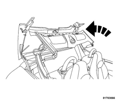 3. Push up on the convertible top release handle to create a gap between the header and top of approximately 8 inches (200 mm). Once the top is free, rotate the release handle back to its stored position.