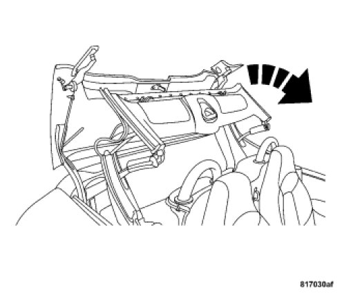 11. Turn the release just past one quarter turn clockwise and pull the convertible top frame carefully down until it meets the windshield header attachment points.