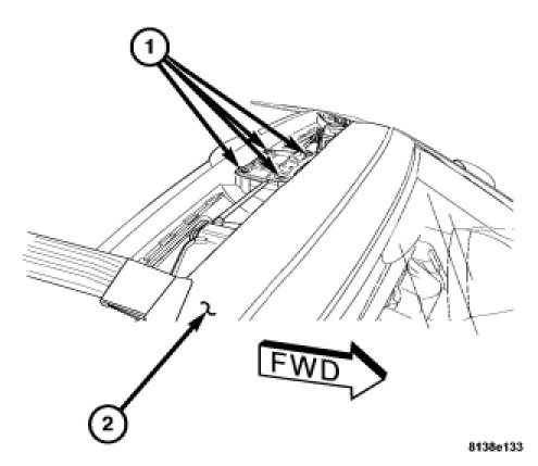 1. Install the linkage assembly to the front bow (2). Tighten screws (1) to 10 Nm (89 in. lbs.).