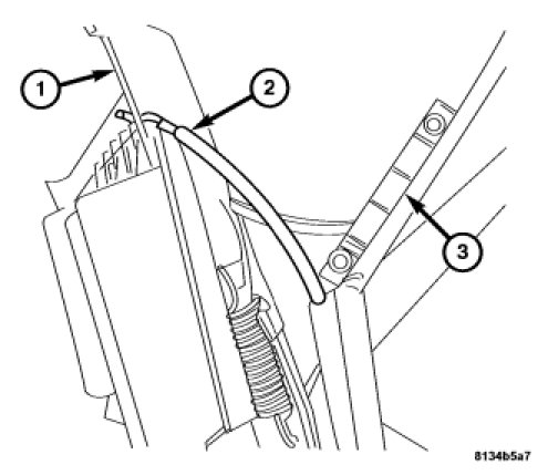 7. Install the cover support cables (1) into the cover (2) (left side shown, right side similar).