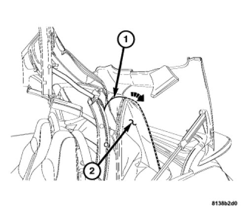 13. Install the front bow side cover retainer rivets (1) (one on each side) (left side shown, right side similar).
