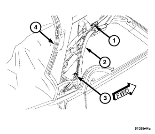 1. Install the roof open switch (1) into the top frame (2) and install the retaining screw.