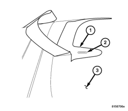 2. Remove the protective backing from the new rubrail, only around the hole for the rear bow striker (2).