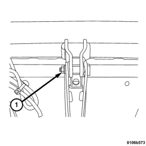 3. Install the rear riser motor front attachment bolt (1). Tighten the bolt to 4 Nm (35 in. lbs.).
