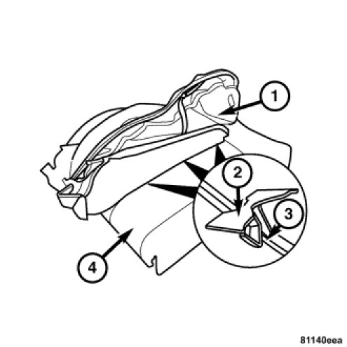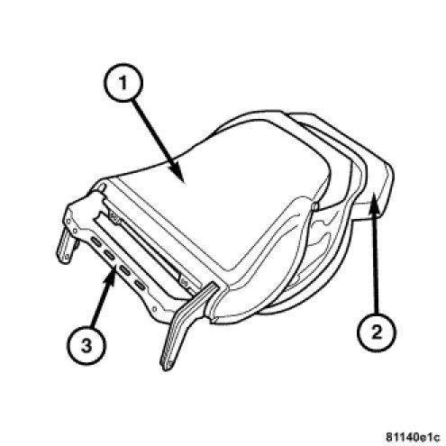 8. Hook in the cover (2) all the way around in the clip groove in the seat back shell and align.