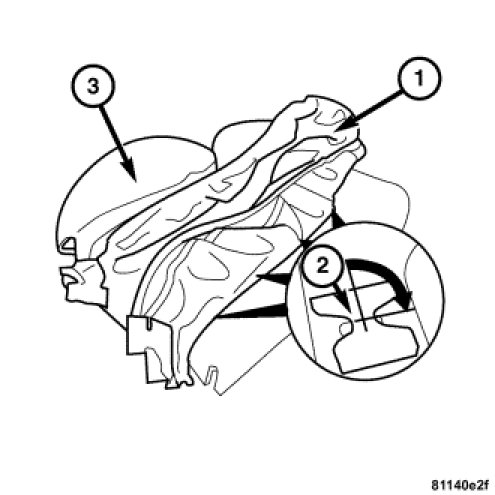 5. Remove the cover (2) from the Velcro(R) strip in area of seat back (1) hinge area.