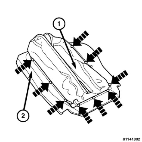 9. Remove the cover (1) from the foam rubber pad (2).