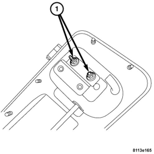 3. Install the mounting nuts (1) attaching the mounting plate to the rear liftgate. Tighten to 2.5 Nm (19 in. lbs.).