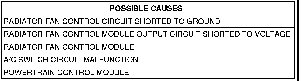 - Repair the Radiator Fan Control Module Output circuit for a short to voltage.