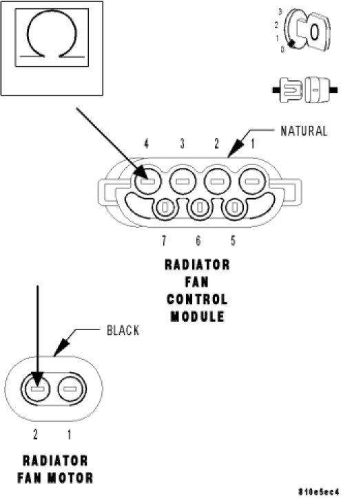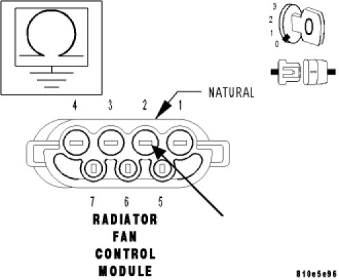 Connect a jumper wire between ground and the Radiator Fan Control circuit at cavity 39 of the PCM C4 harness connector.