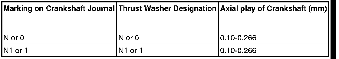 Thrust plates are assigned to the bearing caps by using the numbers "1" and "0" or "N1" or "N0". These numbers are also engraved on the journal of the crankshaft, usually following the lower bearing identification letters.