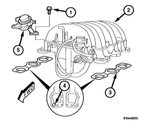 5. Disconnect the vacuum lines to the EGR valve, brake booster, crankcase ventilator and purge valve from the intake manifold.