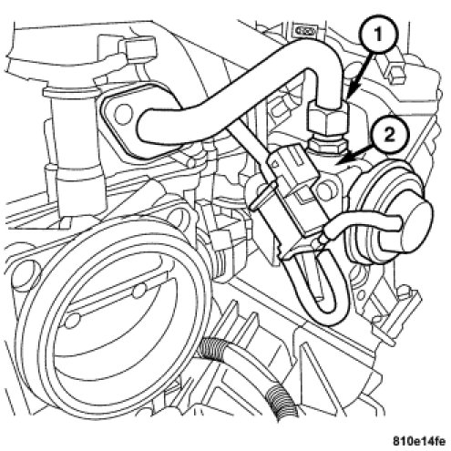 7. Disconnect the EGR pipe (1) at the EGR valve (2).