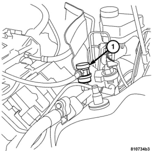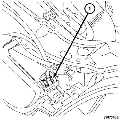 The low pressure service port (1) is located on the suction line on the left side of the engine compartment near the shock mounting.
