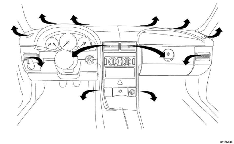 The mode control on the A/C Heater Control Panel is used to direct the conditioned air to the selected system outlets. The mode control switches directs engine vacuum to control the mode doors, which are operated by vacuum actuators. The mode control switches electrical current to control the mode doors, which are operated by actuators.