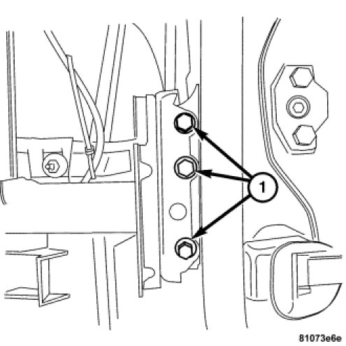 8. Install the bolts (1) attaching the instrument panel support to the front of the vehicle bulkhead.