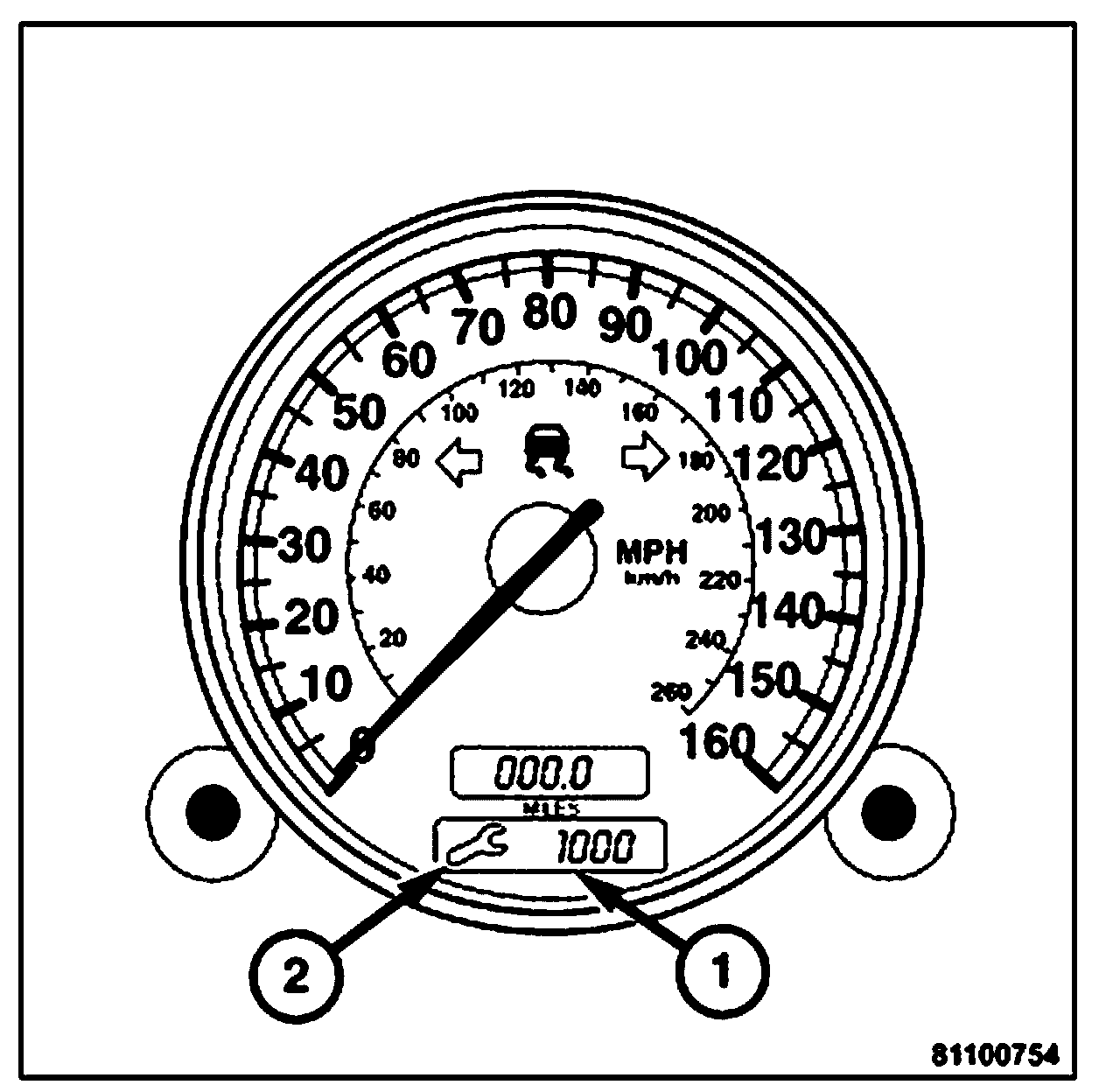 1. Automatically when the odometer (1) is reset to 0 within the first 155 miles. (The FSS maintenance indicator is reset to the values set at the factory).