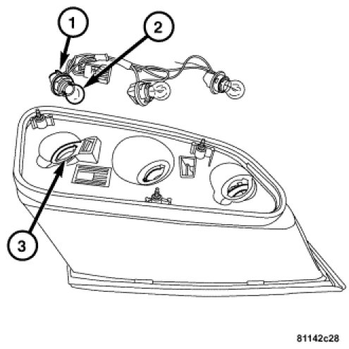 1. Install the bulb (2) into the tail/stop lamp socket (1).