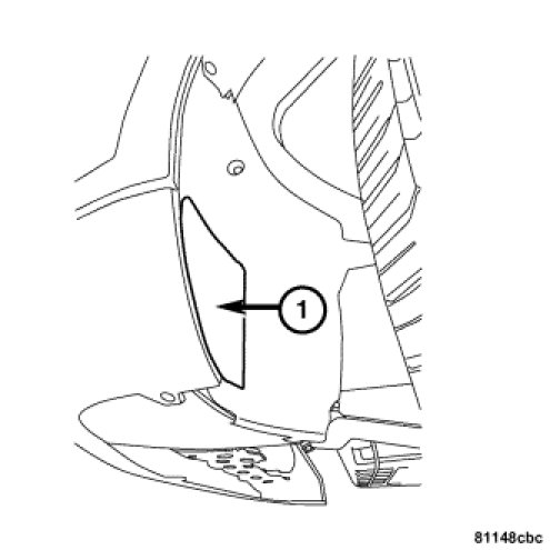 3. Rotate the steering wheel fully in one direction and open the access panel (1) in the front inner fender liner.