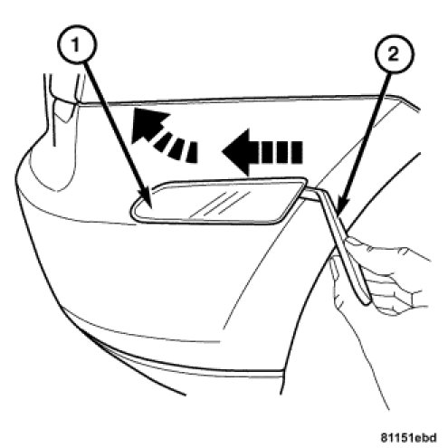 2. Insert a trim stick (2) at the front edge of the rear marker lamp lens (1), gently depress rearward and lift out from the fascia.