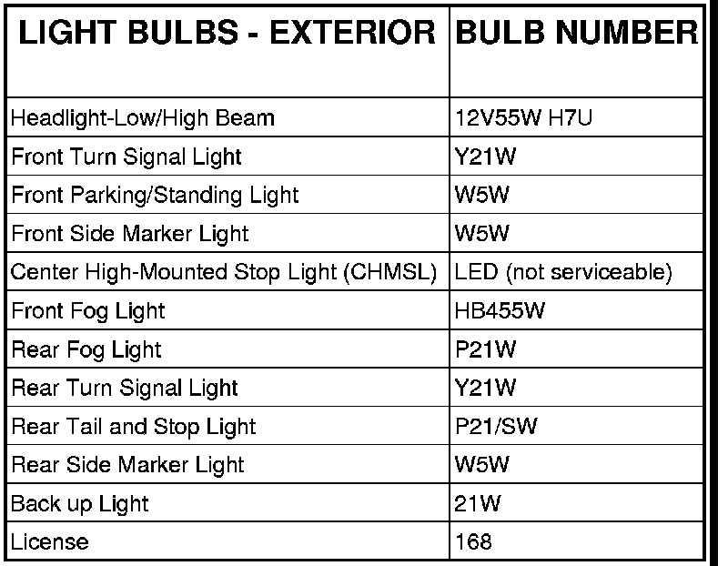 REPLACEMENT LIGHT BULBS - EXTERIOR