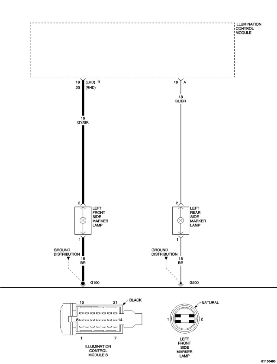 - Repair the Fused B(+) circuit for an open between the Left Front Side Marker Lamp and the Illumination Control Module.