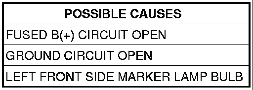 - Repair the Left Front Side Marker Lamp ground circuit for an open.