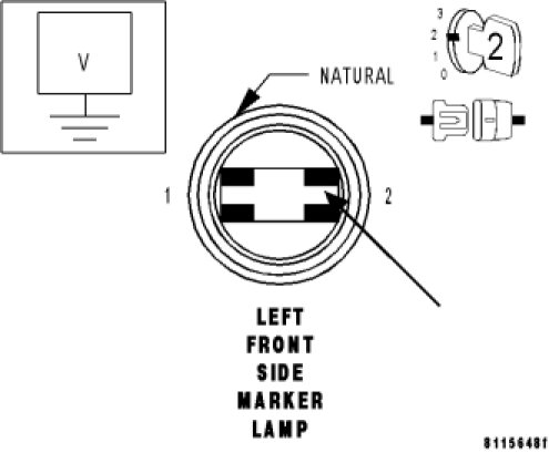 Measure the voltage between the Left Front Side Marker Lamp harness connector cavity 2 and ground.