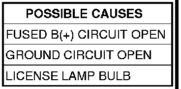 - Repair the License Lamp No.2 ground circuit for an open.