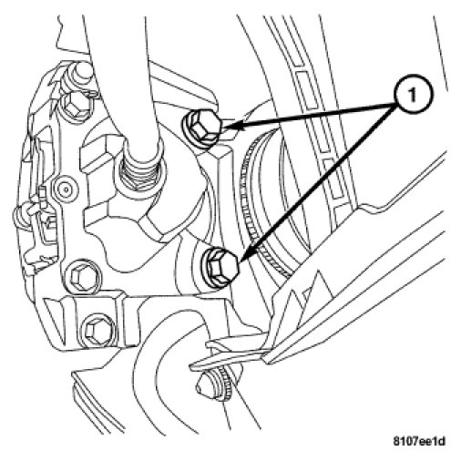 4. Remove the disc brake calipers and bolts (1).