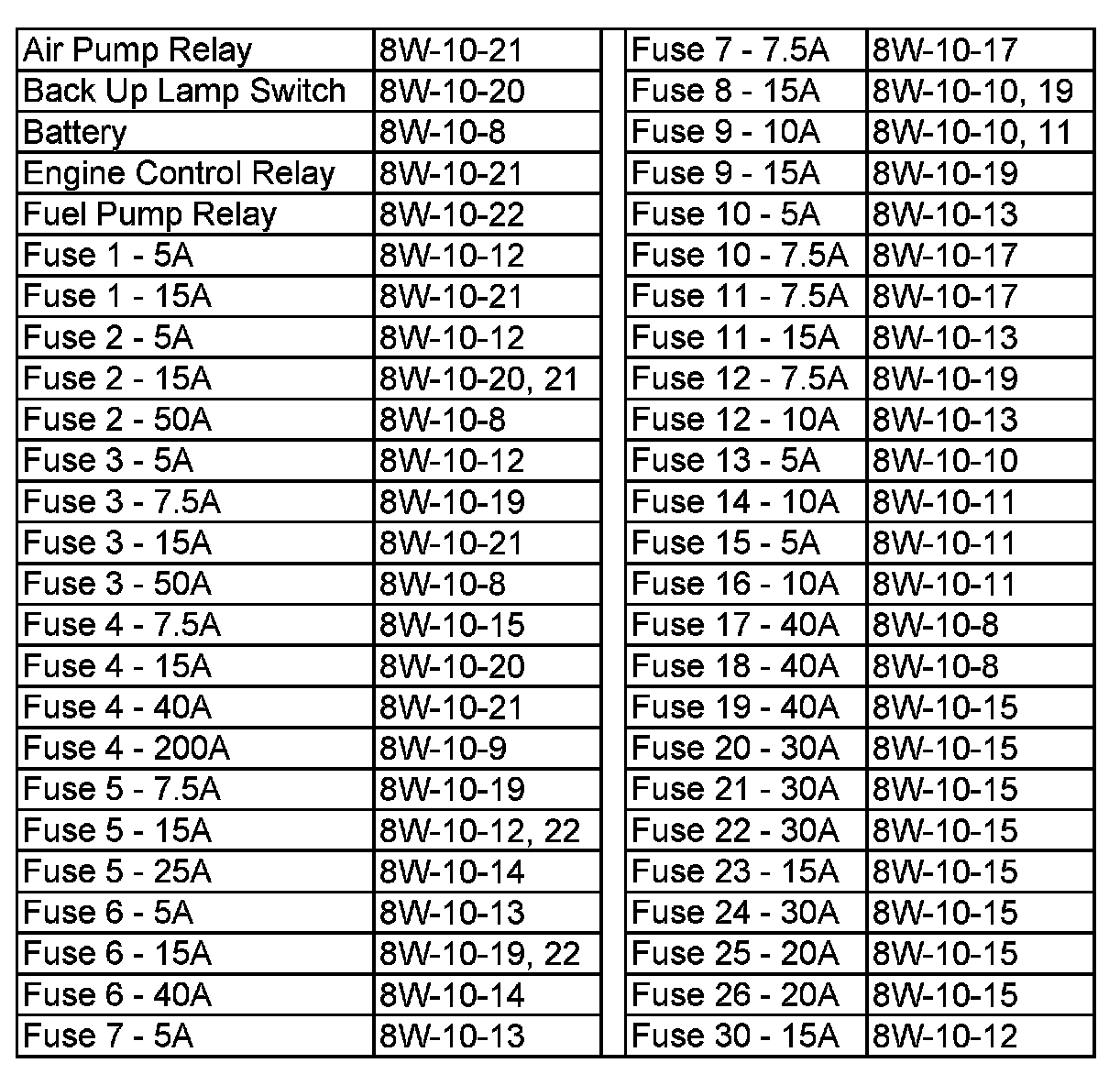 Power Distribution Circuits (Air Pump Relay - Fuse 30):