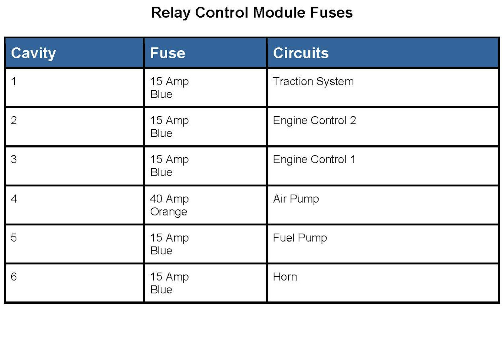 Relay Control Module Fuses