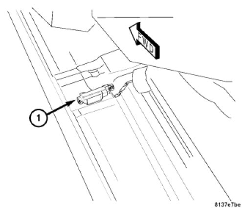 15. Remove the two bolts attaching the side impact sensor (1) to the body cross brace.
