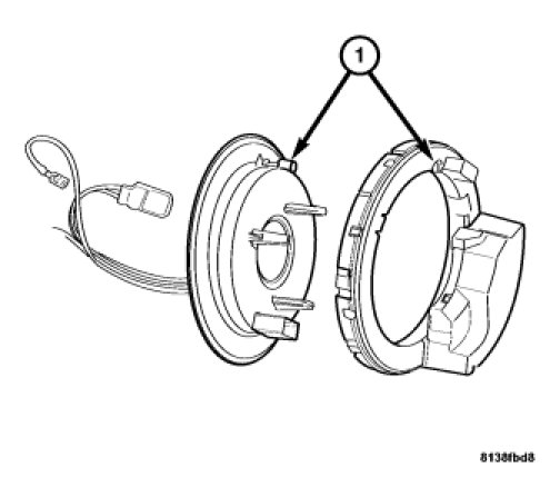 3. Snap the steering angle sensor retaining tabs (1) onto the clockspring.