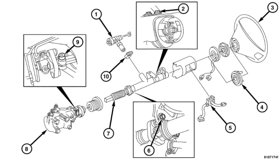 CAUTION: Safety goggles should be worn at all times when working on steering columns.