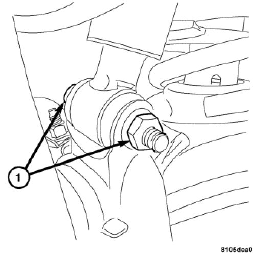 5. Install the shock absorber bolt and nut (1) to the lower control arm. Tighten to 55 Nm (41 ft. lbs.).