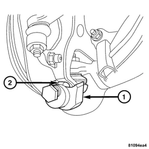 7. Remove the nut (2) attaching the lower control arm to the lower ball joint.