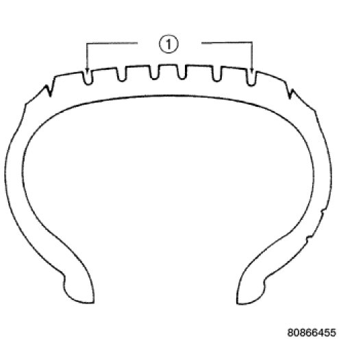 For proper repairing, a radial tire must be removed from the wheel. Repairs should only be made if the defect, or puncture, is in the tread area (1). The tire should be replaced if the puncture is located in the sidewall.