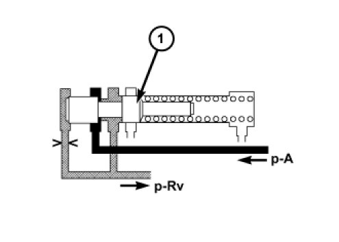 The regulating valve pressure (p-RV) is set at the regulating valve pressure regulating valve (1) in relation to the working pressure (p-A) as far as the maximum pressure.