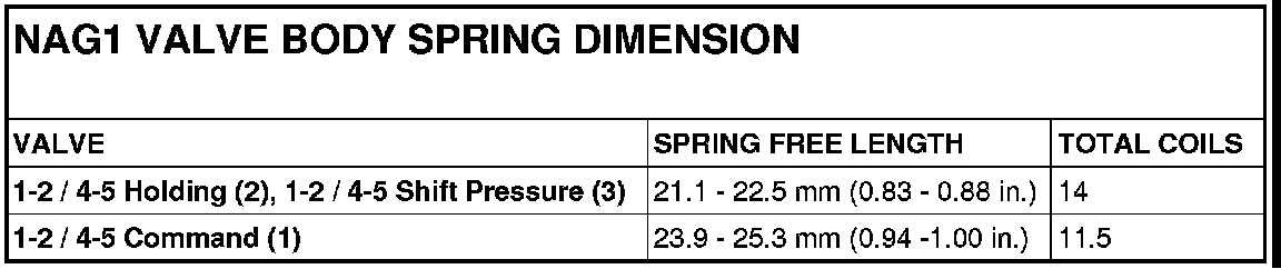6. Lubricate and install the 1-2 / 4-5 Command valve assembly (1), 1-2 / 4-5 Holding Pressure Shift Valve (2) and the 1-2 / 4-5 Shift Pressure assembly (3) into the valve body.
