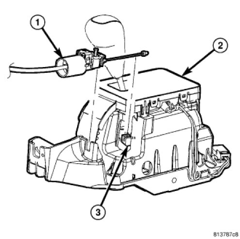 4. Remove the floor console as necessary for access to the park lock cable. Center Console - Removal.