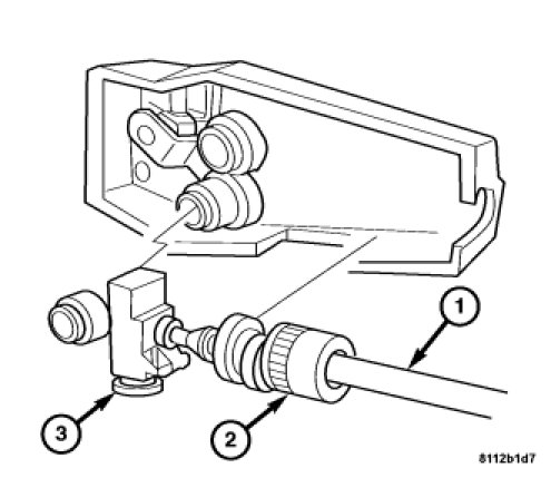 2. Press the release button (3) and install the reverse lockout cable (1) in the bracket. Tighten the lock nut (2).