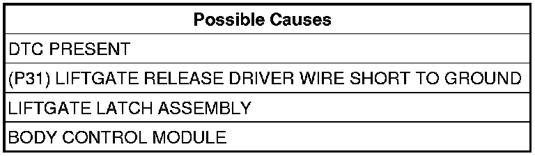 3. (P31) LIFTGATE RELEASE DRIVER WIRE SHORT TO GROUND