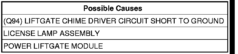 3. (Q94) LIFTGATE CHIME DRIVER CIRCUIT SHORT TO GROUND